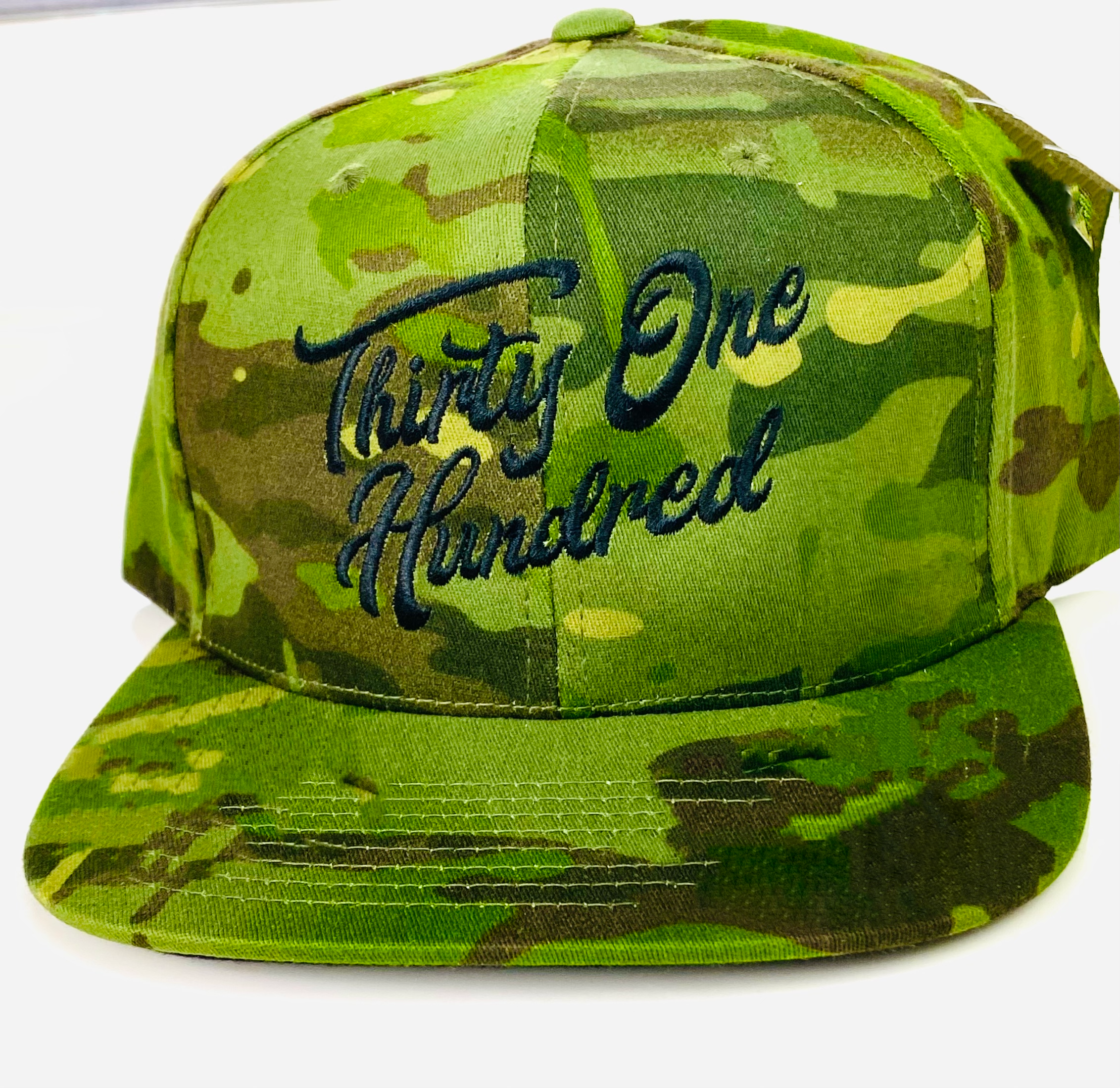 Grn Camo/ Blk Script, Flat Bill SnapBack - Sold Out